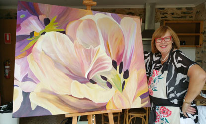 Bold colours and large blooms, inspire me. However, black and white paintings also feature in my work. These show beauty in the simplest format. I enjoy the subtle way that a petal folds and how the light hits it, making it glow. My art is about how to live life with a deeper appreciation of the world. I now focus on the importance of knowing how to be present in the moment; otherwise those moments will pass us by. To capture, in particular, the light within these fleeting seconds, inspires me to paint.