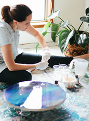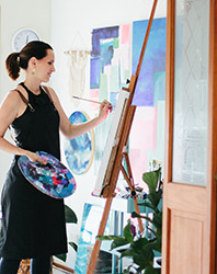 Claire Rackley is a Brisbane-based artist, best known for her bold resin panels and her bright acrylic canvases. Claire’s art is about reflection and to find calm in life’s chaos. The heavens above and the oceans below inspire her resin pieces, which she then translates into abstract designs. They are peaceful and personal and allow the viewer to stare deeper and deeper into each resin layer. Claire’s acrylic works are playful and full of life. As a young mother of four she has learnt to let go of perfectionism and to express her inner child through the use of joyful colours. After brain surgery in 2015, she found healing through art and therefore deliberately paints with the intention to bring healing to the viewer. Claire is a Christian and her art is designed to bring a stillness of soul.