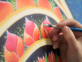 I recall at the age of 13 sitting down with a large piece of paper and crayons and spending a few hours creating a detailed, mirror image, geometric design, and when completed I realized I had found my voice, my expression of my inner landscape of thoughts, feelings, experiences and dreams. Having grown up in many different countries and diverse cultures I had found a way to harmonise my outer and inner impressions. Continuing to travel most of my life I can now see this is an essence of Dream Into Being creations.