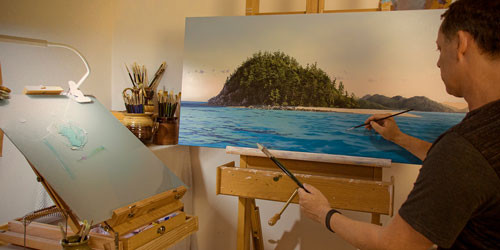 Jarrod has worked on commissions and has exhibited his work in the past but prefers now to sell his original paintings from his studio on the Sunshine Coast.