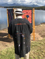 He has presented his paintings, together with their geological stories, on sites across Africa, Portugal, United Kingdom, Canada, the United States, and throughout Australia. Audiences have included students, engineers, earth scientists, accountants, drilling crews, medical doctors, teachers, local councillors, politicians, farmers, tourists, lawyers, and maintenance workers.